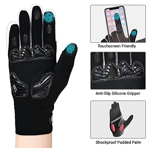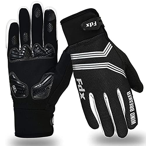 Guanti da ciclismo, antivento, con cuscinetti in gel, compatibili con touch screen, guanti con dita complete, di FDX