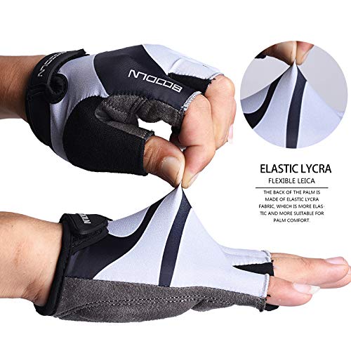 Materiale elasticizzato: i guanti da ciclismo sono realizzati in tessuto di lycra ad alta elasticità, morbido, traspirante e antiabrasivo. Ci sono diversi fori nelle dita e sul palmo, che consentono di avere una migliore traspirabilità nel palmo della mano durante la guida. Il retro del guanto è realizzato in materiale di alta qualità, che è un tessuto leggero e traspirante. In modo che i guanti mantengano le mani asciutte e confortevoli.