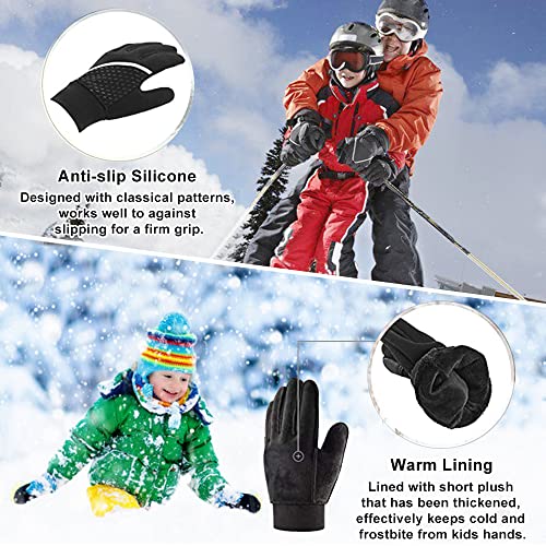 Guanti Ciclismo Touch Invernali, Guanti Bici Invernali Bambino, Guanti Touch Screen Invernali Bambino, Guanti Moto Invernali Impermeabili Termici Calcio Sport Sci Scooter Antiscivolo (M/8-10 anni, D)