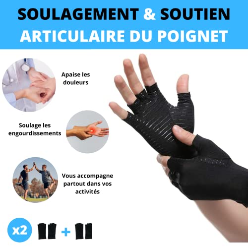 ✅ 2 paia di guanti: vi proponiamo un set di 2 paia di guanti di compressione neri di formato mitano per avere sempre un paio disponibile e quindi continuare il sollievo dei dolori da artrite e artrite. Basta con i dolori articolari quotidiani, indipende