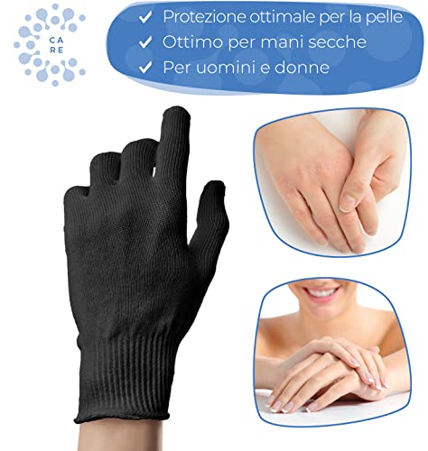 Well B4 Care Guanti di cotone, guanto in stoffa, morbidi guanti in maglia con polsino elastico, 1 paio, nero, taglia S