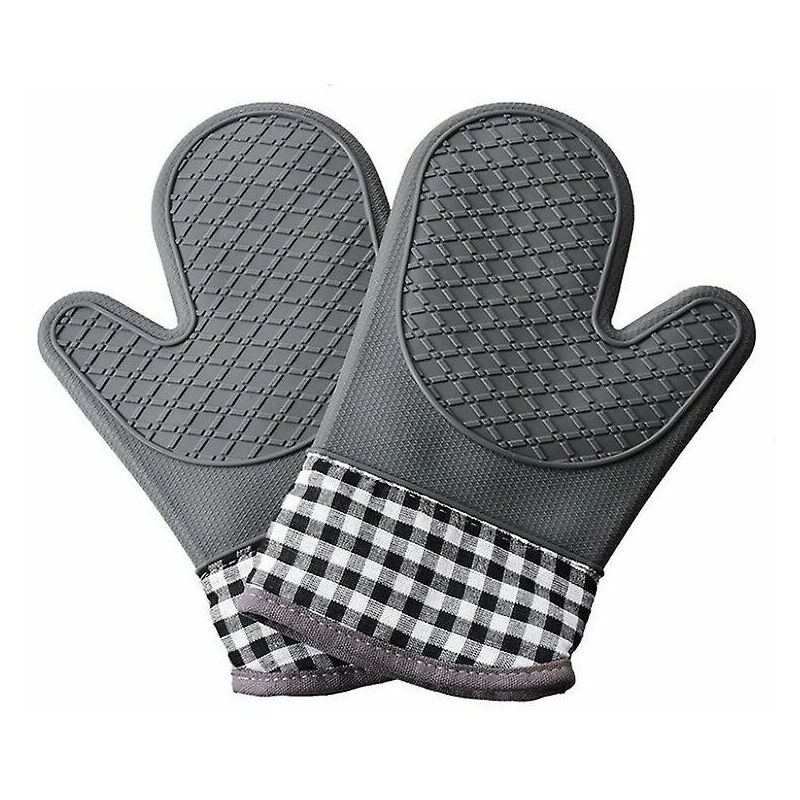 Colore: grigio Materiale esterno cotone e silicone Materiale imbottitura cotone Quantità: 2 pezzi Noi usa materiale siliconico amichevole e di alta qualità come strato esterno, morbida imbottitura in poliestere-cotone e resistente I nostri guanti da forno per la cucina domestica sono più lunghi e ampiamente utilizzati per cucinare. Grill, Microonde, Zuppa e altro ancora. Offre una migliore protezione per te e la tua famiglia. Impermeabile e resistente al freddo, ti protegge dalle ustioni da vapore e rende il tuo tempo di cottura facile e sicuro. Utilizziamo silicone alimentare isolamento che offre una protezione fino a 500F per proteggere le mani e i polsi dalle scottature. Il guscio sul palmo in silicone con motivo a rombi con altezza sporgente di 0,8 mm non solo ha una migliore resistenza al calore, ma anche tutti gli strumenti di cottura hanno un presa più stabile e antiscivolo, particolarmente resistente al calore e all'acqua.