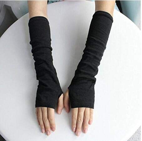 Guanti da donna alla moda, senza dita, elasticizzati, neri, per autunno e inverno, manica lunga, per donne e ragazze