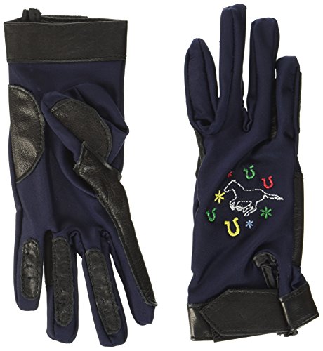HKM Pro Team - Guanti da equitazione per bambini, con cavallo galoppante, colore blu scuro, 8