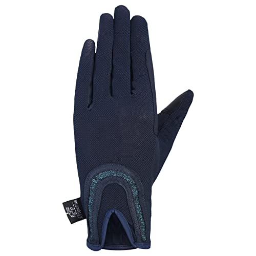 AFE Guanti da equitazione Sereno in pelle sintetica equestre Guanti da donna traspiranti Mesh Glitter guanti (blu, M)