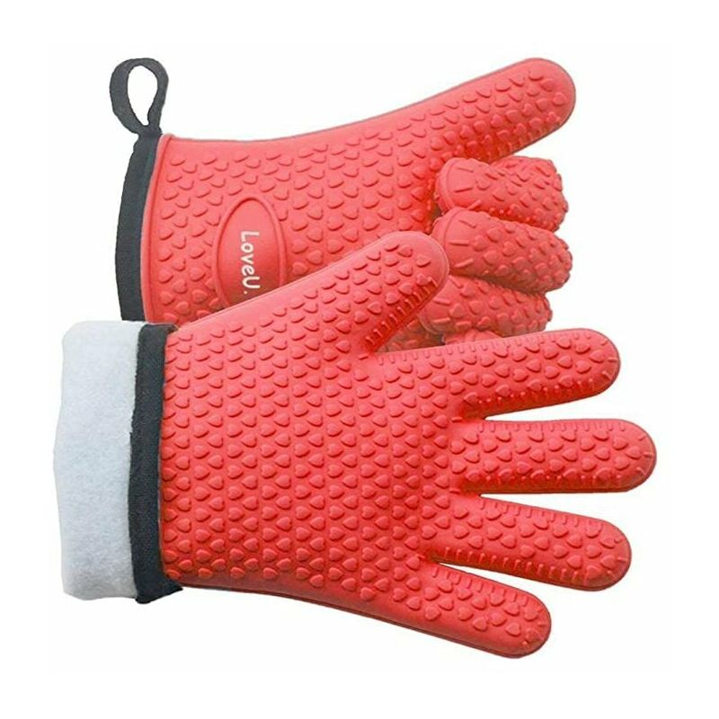 MIGLIOR DESIGN, DOPPIA PROTEZIONE E COMFORT: Guanti in silicone a doppio strato per cinque dita. Il suo strato esterno in silicone è resistente al calore e all'acqua. Fodera interna in cotone per il massimo comfort. La doppia protezione offre una migliore protezione termica per le mani rispetto ad altri normali guanti da forno. (da -4 a 220°C) Silicone alimentare puro al 100%: offriamo silicone alimentare professionale atossico e privo di BPA. Considerando tutti i possibili effetti negativi, questa è l'opzione più sicura per te e per i tuoi cari! dieta equilibrata! Pentole e accessori per grigliare versatili e pratici: gli amati guanti resistenti al calore rendono la cucina più sicura e confortevole, che si tratti di cucinare, grigliare, bollire l'acqua, preparare marinate, aprire lattine o barattoli o qualsiasi altra attività da calore, olio, acqua e macchie, proteggono bene le mani. Facili da pulire: a differenza di altri guanti in tessuto o cotone, i nostri guanti sono molto facili