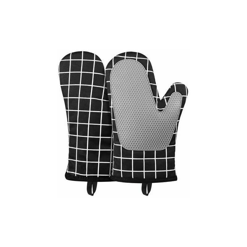 Materiale sicuro e resistente al calore: i guanti da forno sono realizzati in materiale siliconico e fodera in cotone trapuntato di alta qualità. Materiale resistente al calore, resistente a temperature da -40°C a 230°C. Silicone antiscivolo: i guanti da forno sono dotati di uno speciale silicone che fornisce un materiale di presa in modo che quando li rimuovi microonde, non dovrai più preoccuparti che la ciotola di cibo caldo scivoli o cada. Facile da pulire: il materiale piacevole e inodore può essere facilmente lavato. Puoi anche capovolgere i guanti, pulire l'interno e lasciarli asciugare, quindi rimetterli semplicemente. Dimensioni perfette: le dimensioni dei guanti da forno (11*7 pollici) si adattano perfettamente mani degli uomini e delle donne. Che tu stia cuocendo al forno, cucinando o praticando fori in teglie o pirofile, il design a dita intere ti assicura di avere sempre una presa su tutto. Multifunzione: i nostri guanti adatti per fornelli, forni a microonde, griglie