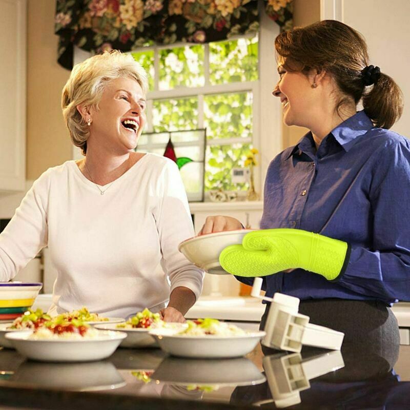 Manici testurizzati antiscivolo - I guanti da forno in silicone sono morbidi e traspiranti. Motivo a forma di diamante, altezza sporgente di 0,8 mm sul palmo, non solo una migliore dissipazione del calore, ma anche tutti gli utensili da cucina sono stabili e antiscivolo. [Resistente al calore e resistente all'acqua] Usiamo il cibo isolamento in silicone di alta qualità, che può proteggere fino a 500 ° F offerte. La morbida fodera in cotone aggiunge anche un ulteriore strato di protezione e comfort, e il guanto è completamente impermeabile, resistendo efficacemente a vapore, liquidi caldi e calore. Migliora il comfort e la sicurezza durante la cottura. Antiscottatura. [Flessibili e durevoli] I nostri guanti da forno proteggono meglio dita, mani e polsi dalle scottature. I guanti da forno sono realizzati in silicone resistente, che è più flessibile e morbido di altri prodotti, comodo per spostare o tenere pentole, piatti, utensili o posate caldi, ecc. [Facile da pulire e conservare] Il