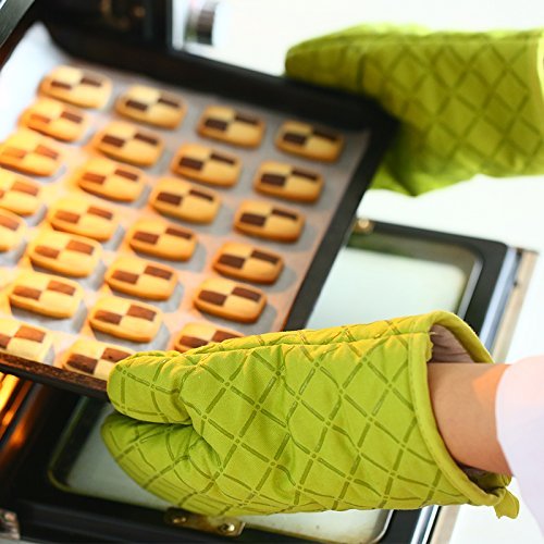Guanti da forno Vokul 27,9 cm antifiamma, in cotone, trapuntati, in silicone, resistenti al calore fino a 204,4 °C (confezione da 2) Green