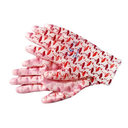 Guanti da giardinaggio, antiscivolo, fantasia: fenicotteri, colore: rosa/bianco, da donna.