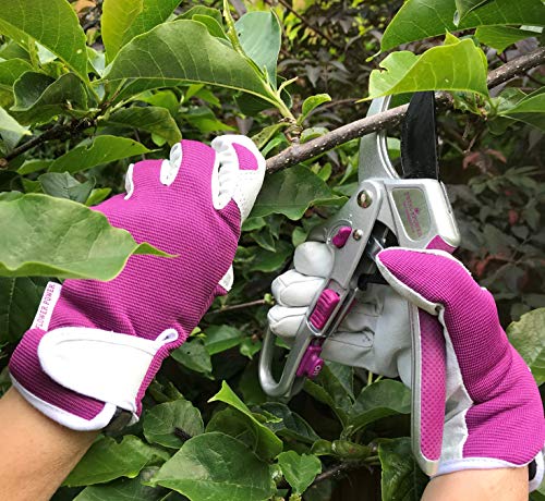 Guanti da giardinaggio da donna in pelle, slim fit, perfetti per il giardino e i lavori domestici, ottima idea regalo, viola