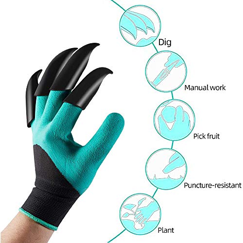 2 paia di guanti da giardino con artigli, guanti in lattice impermeabili, strumenti per proteggere le mani per scavare piantare lavori di giardinaggio (verde)