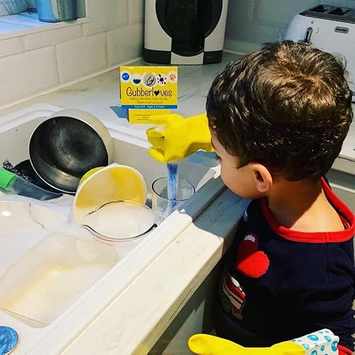 Guanti di gomma per bambini, design a schizzi, misura XXS, età 2 - 5 anni, YELLOW, BUBBLES XS 6-9YRS