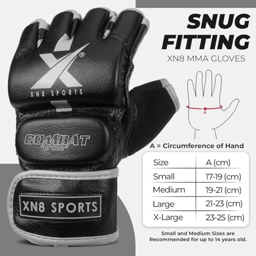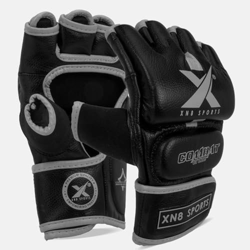 XN8 MMA Guanti per Grappling Arti Marziali Allenamento, Sparring Fingerless per Allenamento, Kickboxing, Muay Thai (XL, Grigio)