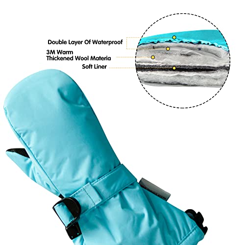 Ami&Li tots - Guanti invernali impermeabili per bambini e ragazzi, guanti caldi da neve e da sci per bambini, con polsini regolabili blu cielo L