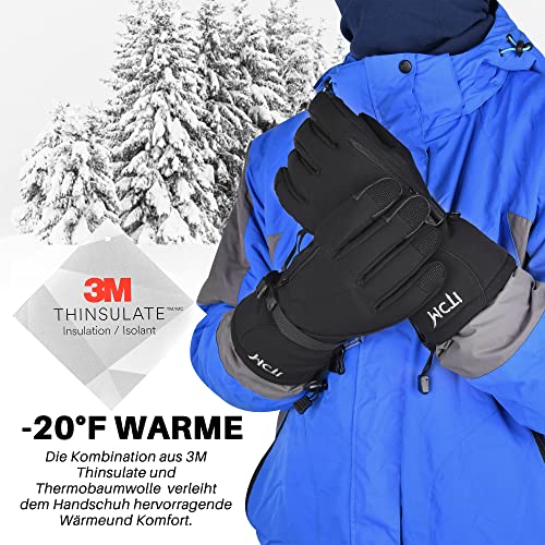 MCTi Guanti Sci Invernali Snowboard Neve Ciclismo Arrampicata Antivento Impermeabile Termico Thinsulate Uomo Nero