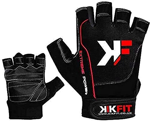 Guanti KIKFIT Amara in pelle per sedia a rotelle Cinghie di supporto per il polso senza dita Guanti con imbottitura in gel traspirante - Ideale per ciclismo, allenamento in palestra, (Grande)