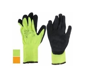 Filo nylon continuo senza cuciture Rivestimento schiuma lattice Heavy - Dorso areato Elevata sensibilita' e presa - Alta visibilita' Palmo nero dorso giallo/arancio DPI classe II - EN 388 - Prestazione 2232