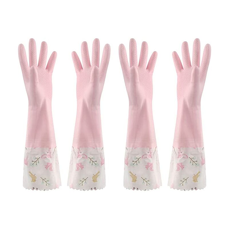2 paia di guanti di gomma con stampe realizzate in Skrsila sono atossici, ecologici, flessibili e durevoli. Formato: 48,5 cm*14 cm / 42,5 cm*18 cm I guanti sono realizzati in gomma, resistenti e riutilizzabili. Quando lavi i piatti, il design antiscivolo sul palmo della tua mano può aiutarti a tenerlo in posizione Guanti da forno lunghi con una calda fodera. Quando lavi con acqua calda o fredda, i nostri guanti per la pulizia possono proteggere le tue mani dai danni, soprattutto in inverno Guanti a cinque dita e morbidi per fare tutti i tipi di lavori domestici. Pratici guanti per la casa adatti a tutte le stagioni Questi guanti possono essere utilizzati per cucinare, lavare i piatti, pulire frutta e verdura, pulire il bagno, pulire la camera da letto, rimuovere la polvere dagli spogliatoi, prendersi cura dei peli degli animali domestici, lavare l'auto, ecc