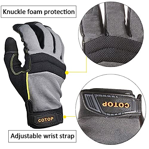 ★★★★★【Funzione touch screen】: guanti da lavoro rinforzati con punta delle dita, 3 polpastrelli touch screen, comodi per l'uso di dispositivi mobili, dorso in spandex con nocche imbottite e pollici imbottiti.