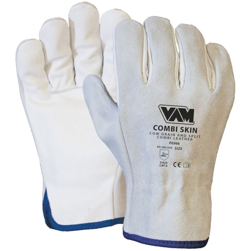 Guanti da Lavoro in Pelle Fiore Crosta modello driver realizzati con pellami di prima scelta. Con elastico stringipolso. Guanto molto resistente all'abrasione e difficilmente perforabile, è utilizzato nella protezione contro i rischi meccanici di varia natura ed è adatto per lavori nell'ambito industriale, di manutenzione, pulizia impianti, agricoltura e fai da te. Guanti da Lavoro in Pelle Fiore Crosta - Combi Skin Guanto in PELLE COMBINATA FIORE e CROSTA BOVINA Guanto modello driver realizzato con pellami di prima scelta. Con elastico stringipolso. Guanto molto resistente all'abrasione e difficilmente perforabile, è utilizzato nella protezione contro i rischi meccanici di varia natura ed è adatto per lavori nell'ambito industriale, di manutenzione, pulizia impianti, agricoltura e fai da te. Caratteristiche: COD. FE006 DPI DI II CAT. IDONEO ALLA PROTEZIONE DA RISCHI MECCANICI: • ABRASIONE 3 • TAGLIO 1 • STRAPPO 4 • PERFORAZIONE 3 • TAGLIO TDM X Resistenza alla rottura: >=6,0 Newton