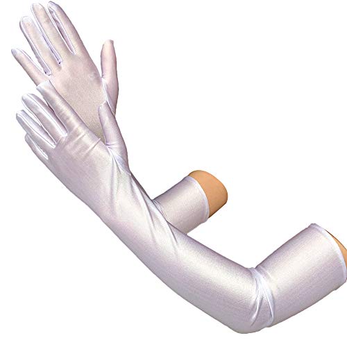 Guanti lunghi in raso a gomito 21 pollici elastici anni '20 Opera Guanti da ballo per feste da sera per donne, bianco, Etichettalia unica