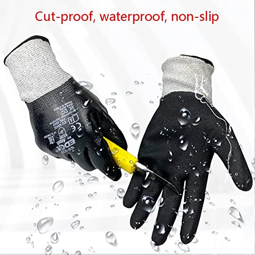 FUFU Guanti e manopole Guanti da Lavoro Impermeabili, Guanti da Giardinaggio, Ispessimento di Punta A Tre Strati, Rivestimento in Gomma, Anti-Taglio, Antiscivolo (Size: L)