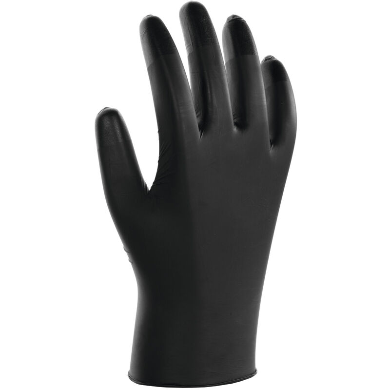 Guanto monouso in nitrile con punte delle dita testurizzate. Senza polvere. AQL 1,5 (EN 374-2). Distributore da 100 pezzi. Set di guanti monouso in distributore. Categoria III. Dati tecnici Contenuto 100 Lunghezza mm 240 Spessore mm 0.07 Colore nero Materiale supporto Nitril Materiale Nitrile Grado di protezione Protezione dai rischi batteriologici a norma EN 374 EN 374 Typ B (KPT) Tipo di prodotto Guanto monouso Variante del rivestimento Nessun rivestimento Resistenza alle sostanze chimiche KPT Peso g 3.8 AQL 1,5 Utilizzo monouso Categoria di protezione Categoria III Tipo di guanto Guanto monouso Misure guanti da lavoro 10