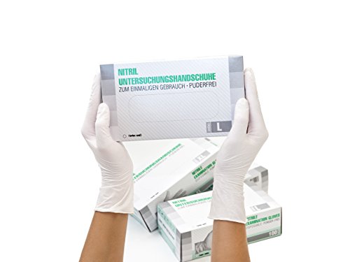 Guanti in Nitrile, 100 pezzi scatole (L, Bianca), guanti da visita monouso, senza polvere, guanti per la pulizia, cucina sanitaria, pulizia della cucina, senza lattice, pulizia sicurezza manipolazione