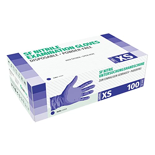 Guanti in Nitrile, 100 pezzi scatole (XS, Viola), guanti da visita monouso, senza polvere, guanti per la pulizia, cucina sanitaria, pulizia della cucina, senza lattice, pulizia sicurezza manipolazione