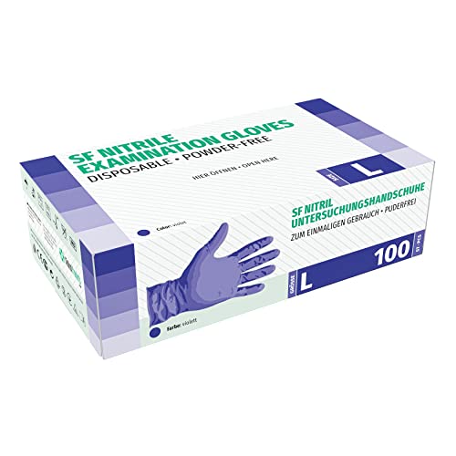 Guanti in Nitrile, 100 pezzi scatole (L, Viola), guanti da visita monouso, senza polvere, guanti per la pulizia, cucina sanitaria, pulizia della cucina, senza lattice, pulizia sicurezza manipolazione