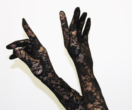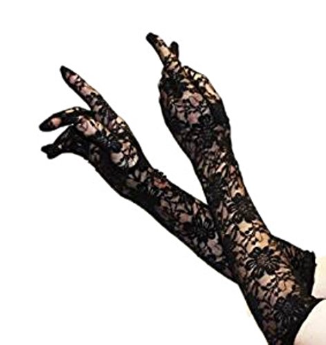 Haac - Guanti in pizzo lunghi, 50 cm, per carnevale o Natale, colore: Nero con fiori