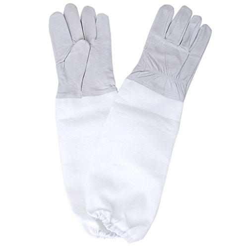 Vzer 1 paio di guanti protettivi apicoltura maniche lunghe con ventilato, colore: grigio e bianco