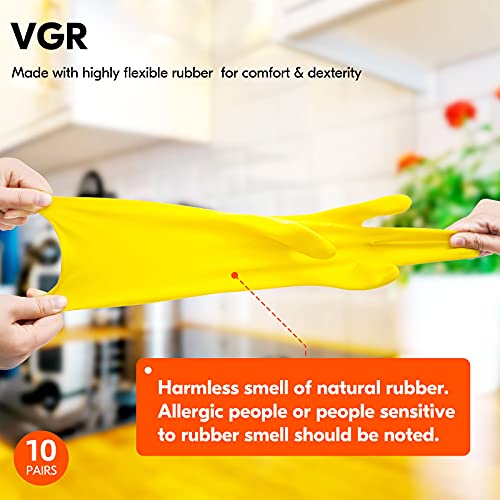 Vgo... 10 paia Guanti Pulizia Riutilizzabili Casa per Lavaggio Piatti, Guanti da Cucina Lavapiatti in Gomma, Spessore Extra a Maniche Lunghe(L,Giallo 10 paia)