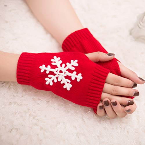 Guanti scaldamuscoli, guanti caldi per il pollice per le donne, guanti invernali caldi senza dita guanti da polso scaldamuscoli, guanti a maglia a mezze dita - rosso