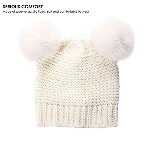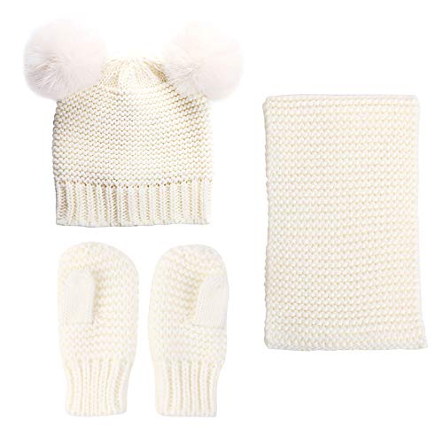 Guanti per sciarpa per bambini Set di guanti per bambini invernali lavorati a maglia pompon cappello scaldacollo guanti per ragazzi 0-3Y ragazze, bianco, M