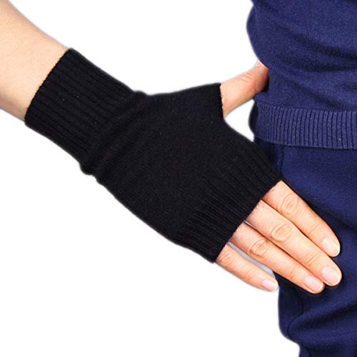 Guanti senza dita, unisex, in lana di puro cachemire della Mongolia. Guanti spessi, senza dita nero Nero