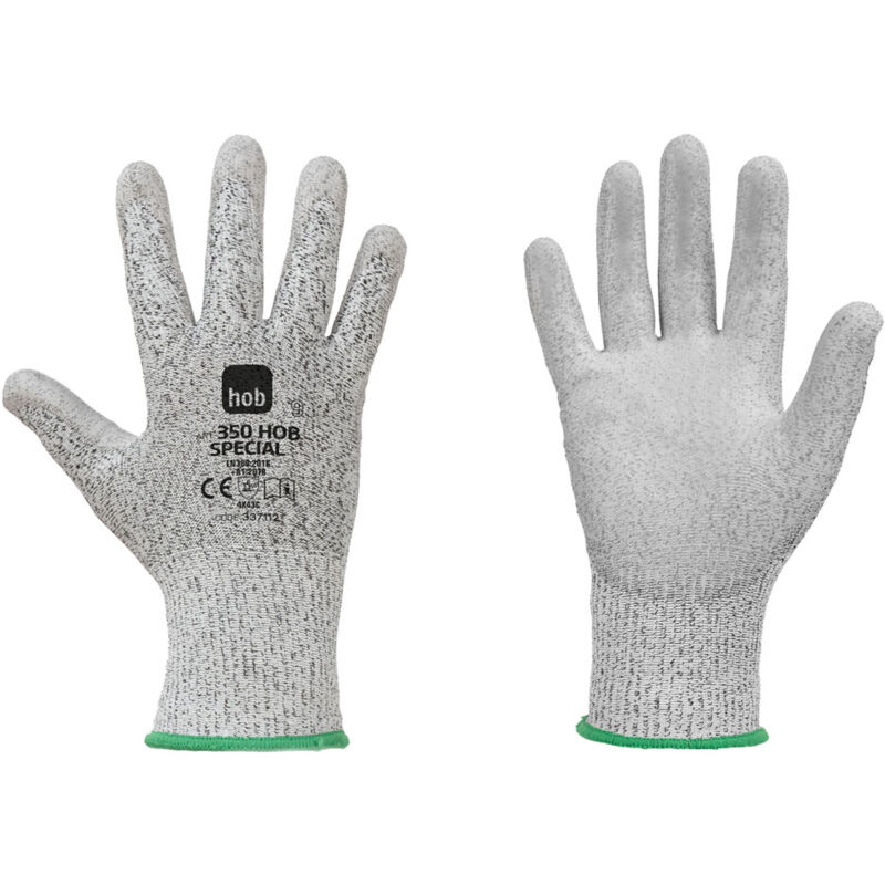 Guanti poliestere/polietilene '350 hob special' tg. 9 - colore grigio Liner polietilene/fibre sintetiche. Palmo e punta delle dita con spalmatura in PU grigio. Polsino elasticizzato, bordatura polsino in poliestere. Impiego: industria automobilistica, magazzino/logistica, industria meccanica, assemblaggio. Certificazioni EN 388:2016+A1:2018. Marcatura CE. Dispositivo di Protezione Individuale - II categoria, CE ai sensi del Regolamento (UE) 2016/425. Confezionato al paio con cavallotto. Tg. 9 - colore grigio Categoria dell'articolo: Segnaletica ed antinfortunistica - Guanti da lavoro