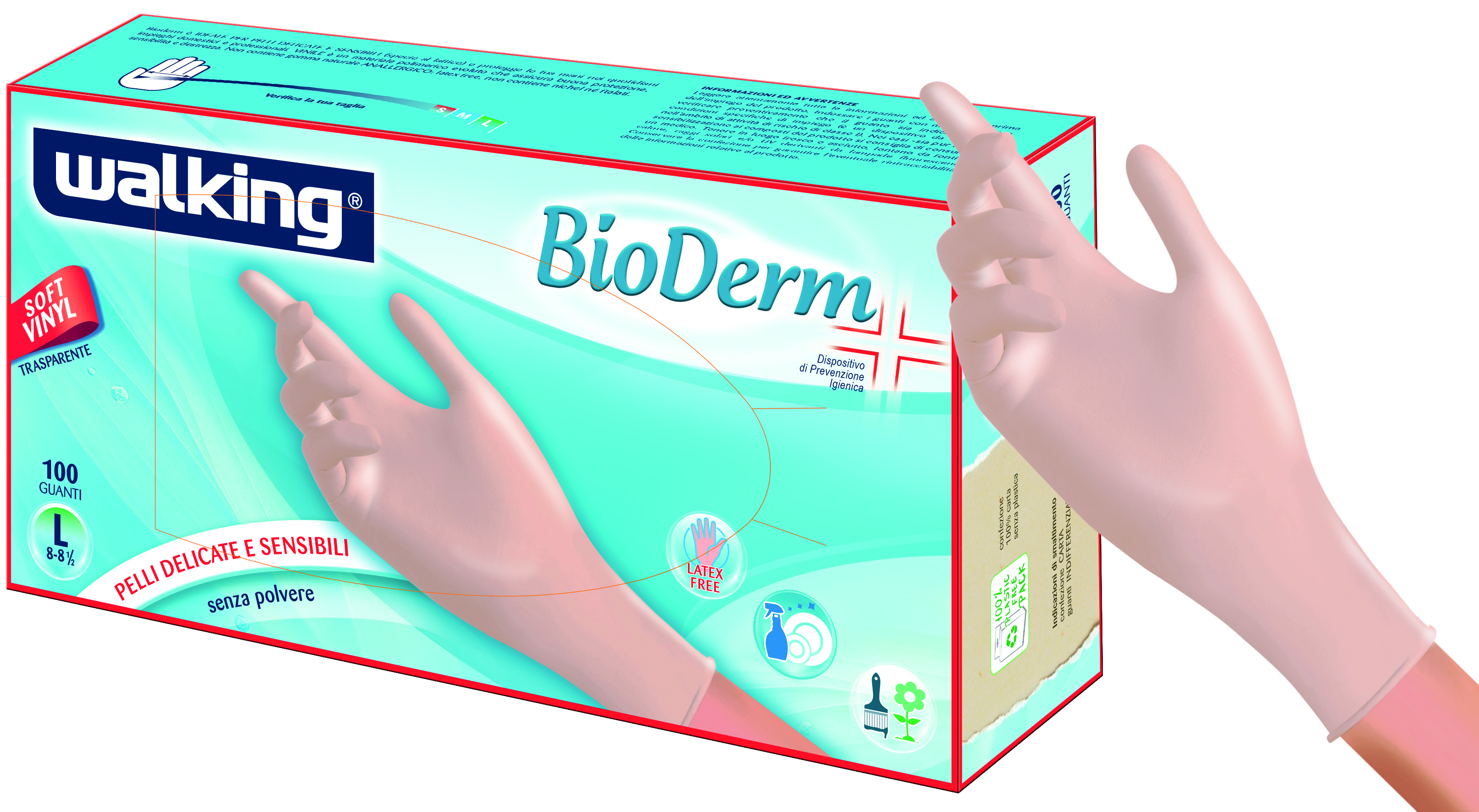 Guanto monouso in vinile trasparente senza polvere.. Indicato in ambiti detergenza e medicale. Ambidestro e con bordino. Indicato per impieghi in ambito detergenza e medicale.