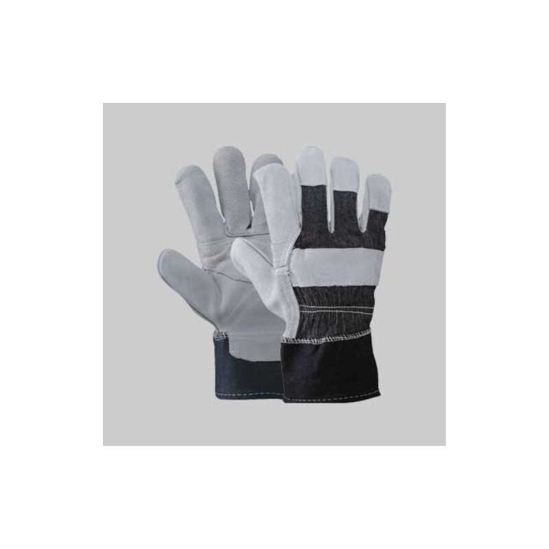 Palmo in crosta rinforzato, dorso in tela jeans, manichetta di sicurezza tela di cotone orlata, interamente foderato sul palmo, elastico interno stringipolso. Indicato per la manipolazione di casse, cartoni, operazioni di carico e scarico, manutenzioni generiche. Guanto crosta/jeans tg. 10 Guanti da lavoro