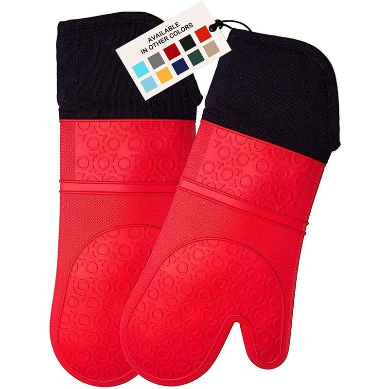 Resistente al calore: i nostri guanti da forno con fodera trapuntata offrono un maggiore comfort durante la cottura. Inoltre risparmieranno gli avambracci teneri dalle ustioni che possono verificarsi quando la tua griglia all'aperto subisce una riacutizzazione. Non prendono fuoco né si sciolgono se usati vicino a una fiamma. Extra lunghi: lunghi 14 pollici, i nostri guanti da forno proteggono meglio dita, mani e polsi dalle ustioni. La protezione del polso più lunga ti protegge dalla punta delle dita fino al polso. Ciò ti consente di impugnare pentole, padelle e pentole in modo sicuro senza scivolare o fuoriuscire. Resistente al vapore e impermeabile: a differenza dei guanti da forno in tessuto, i nostri guanti da forno in silicone non assorbono i liquidi. La parte in silicone del guanto è completamente impermeabile. Aiutano anche a proteggere le mani mentre si tengono piatti e stoviglie calde, si lavora sulla griglia o si raggiungono i forni. Puoi anche usarlo come presina per