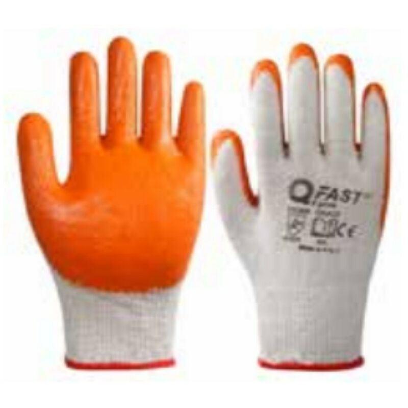 QFAST - GUANTO IN LATTICE LISCIO - POLIESTERE SPALMATO IN LATTICE SENZA CUCITURE - TAGLIA L Guanto in poliestere senza cuciture, spalmato in lattice, palmo liscio. Ideale per lavori generici di manutenzione e produzione. Evita lo scivolamento durante la manipolazione del vetro. Resistente allo strappo e all'abrasione.