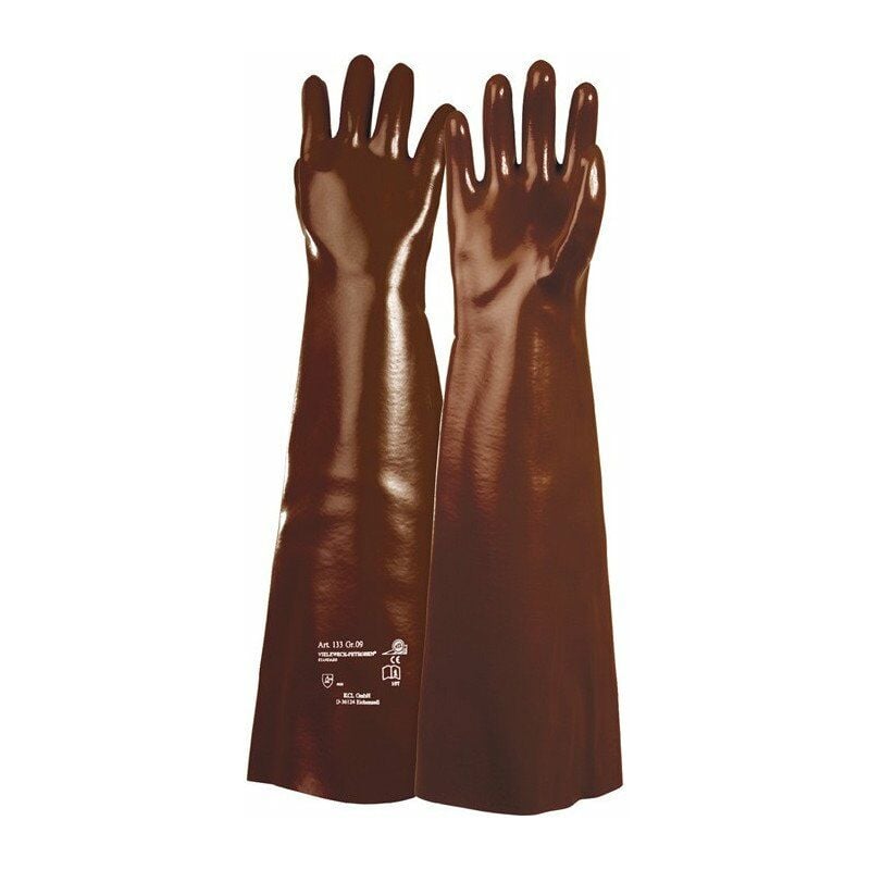Secondo la norma EN 388 · gatto. II · Jersey di cotone con rivestimento in PVC · superficie liscia · polsino extra lungo · completamente rivestito · per esigenze particolari di capacità di carico meccanico · repellente all'umidità · buona sicurezza di presa per parti oleose e grasse · jersey di cotone simpatico per la pelle serve l'alto comfort d'uso · Applicazione: Lavori di siel e fognature, industria pesante, movimentazione di parti oleose, industria dei materiali da costruzione e da costruzione Altre caratteristiche tecniche: · Resistenza all'abrasione: 4 · Resistenza allo strappo: 2 · Forza di puntura: 1 · Resistenza al taglio (prova di taglio): 1 · Design: polsino extra lungo, superficie liscia · Spessore circa: 1,25mm · Norma: EN 388