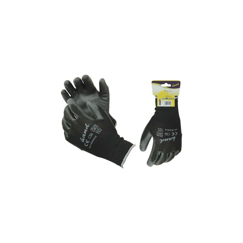 In maglia di poliestere nero a filo continuo, con spalmatura in poliuretano nero sul palmo e polsino elastico in maglia. Alta sensibilitÃ, resistenza all’abrasione ed allo strappo. Ideale per lavori delicati e di precisione. Dispositivo di protezione individuale (DPI), categoria 2. Protezione contro i rischi meccanici conforme alla normativa EN388, con livelli 3131X.