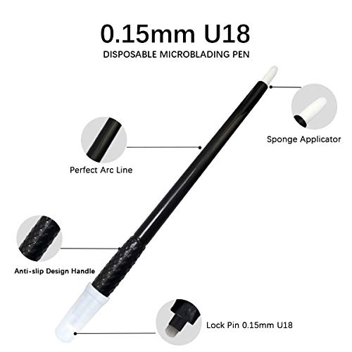Guapa Penna microblading monouso a forma di 18U con lame ad ago da 0,15 mm con spugna a pigmenti (10 pezzi)