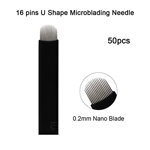 Guapa 50 Pcs U Shape 16 e 18 Aghi neri Microblading Blade Trucco Permanente Sopracciglio manuale per tatuaggio