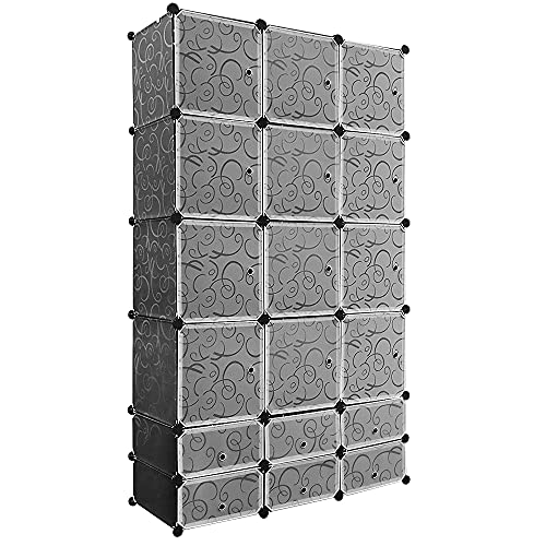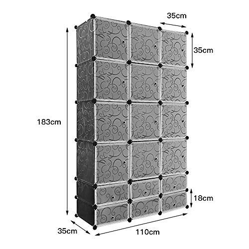 Guardaroba Modulare, Armadietto Fai da Te, Mobiletto in Plastica, Armadio portatile per appendere i vestiti, stanzino combinato, ripostiglio modulare per risparmio di spazio(6 piani e 18 porte)