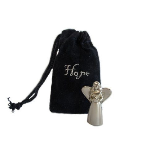 Statuetta in metallo a forma di angelo con un messaggio speciale sul retro.