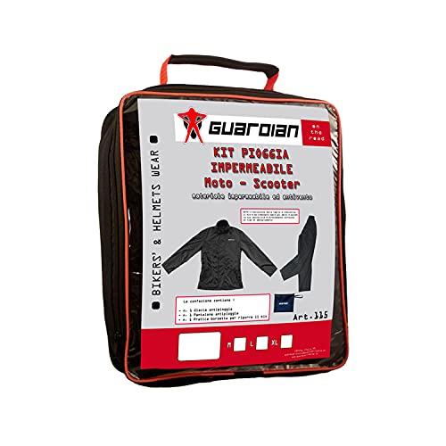 Guardian 115 Kit 2 Pezzi da Moto Anti Pioggia (Giacca e Pantaloni) - 100% Impermeabile - Chiusure a strappo e cerniere. - Nero, Taglia XL