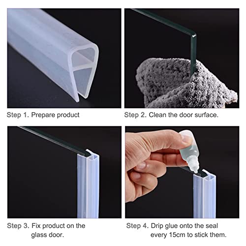 Guarnizione per doccia, in vetro, per porte del bagno, a forma di U trasparente, 200 cm, per pareti doccia e altre parti in vetro tra 10 mm di spessore (per vetro da 6 mm)